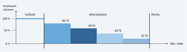 Für die Altersteilzeit gibt es verschiedene Modelle mit einer Laufzeit von 24 bis maximal 48 Monaten.