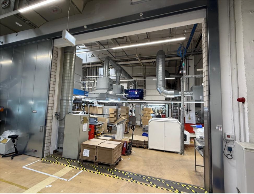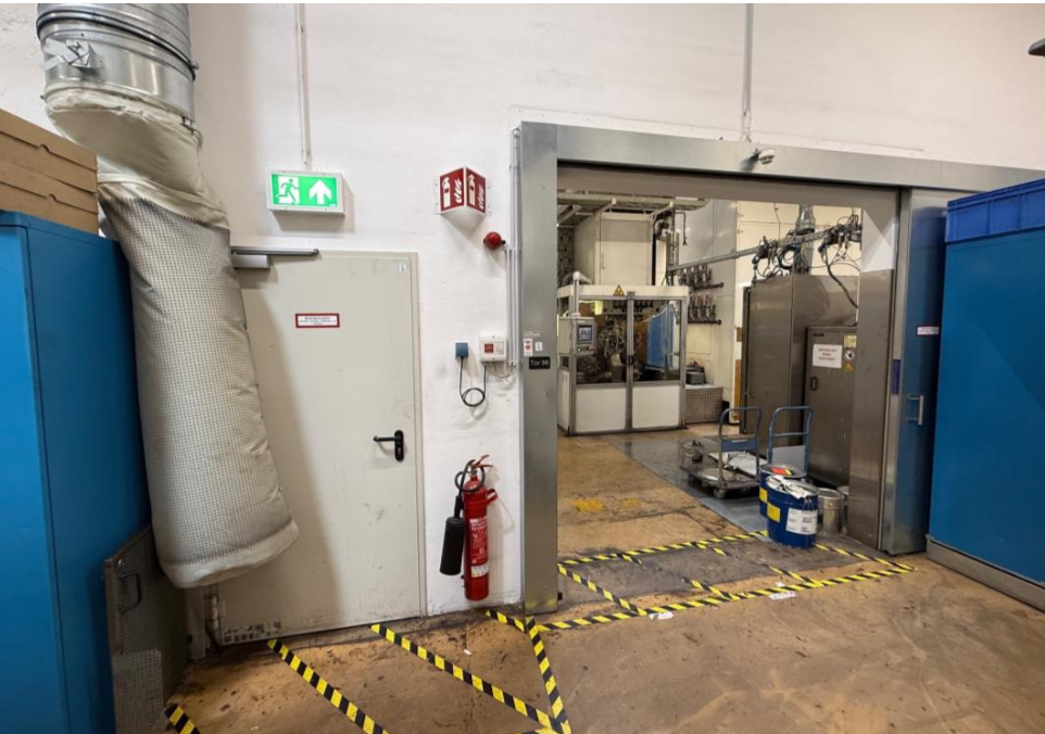 – Trennung der Produktion in zwei Brandabschnitte durch den Einbau von Brandschutztoren und -türen.