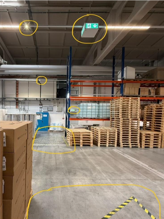 – Erweiterung der Flucht- und Rettungswegkennzeichnung sowie der Notbeleuchtung im Bereich der Produktion und Läger.