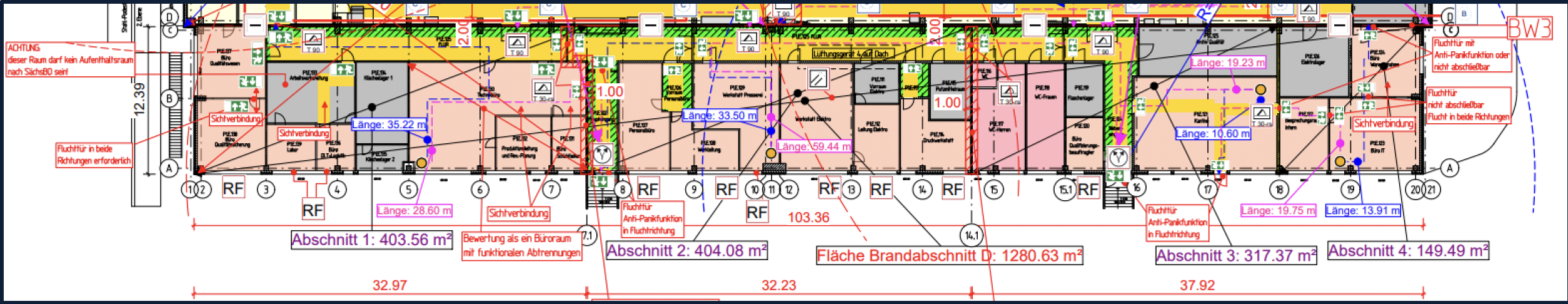 – Einbau zusätzlicher Flucht- und Rauchschutztüren (z. B. in der Kantine)