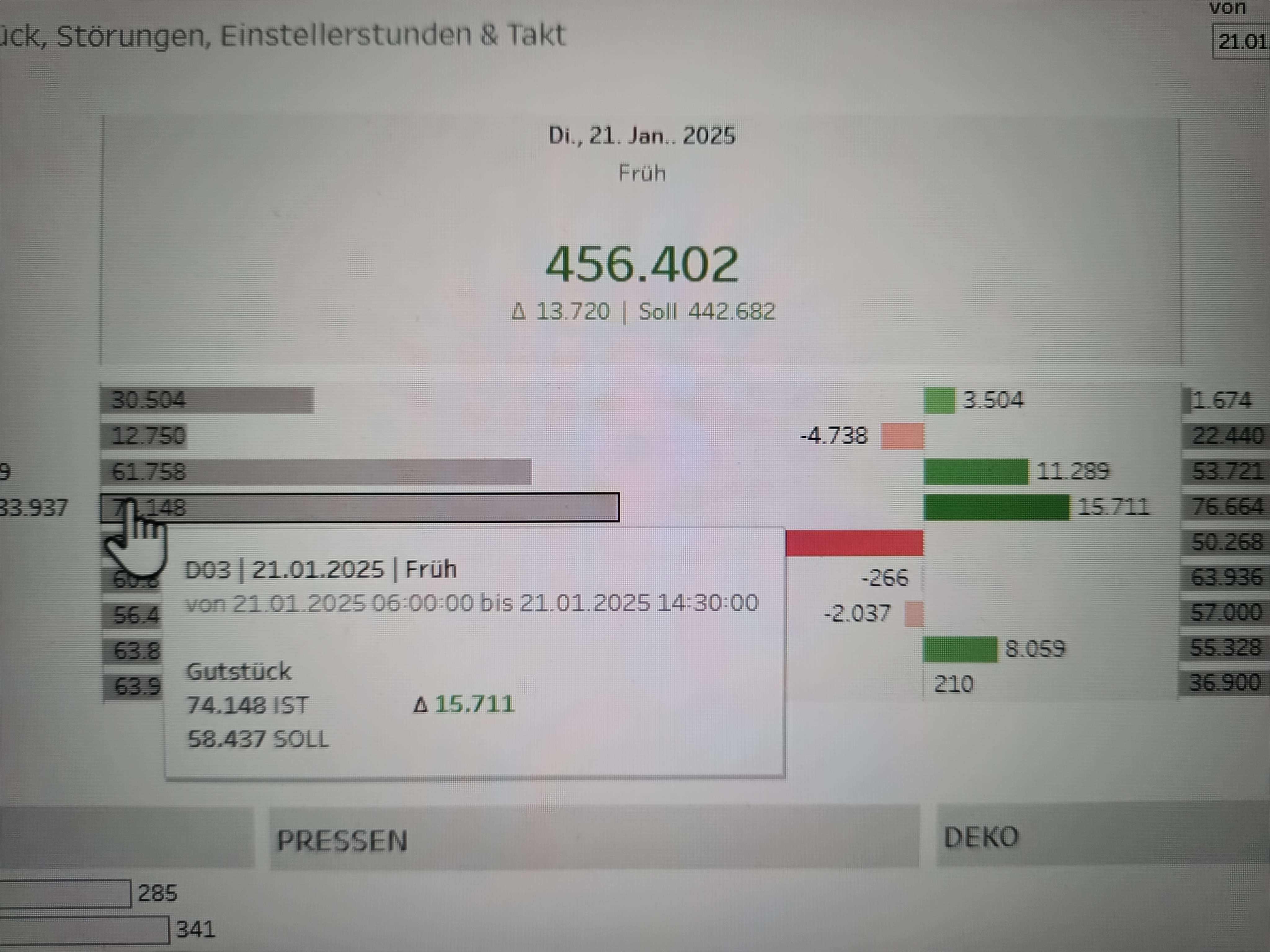 Die Gesamtkosten für das Projekt, einschließlich Anschaffungskosten und Infrastruktur, belaufen sich auf ca. 919.000 €. Die Dosenlinie 3 hat im Januar bereits ein Plus von +309.958 Dosen zum Soll heraus gefahren und eine OEE-Steigerung von +2,4% zu der Vorgabe von 55,7% erreicht. Ebenfalls konnte man eine Rüstzeitverkürzung von -21,0 Stunden erzielen.