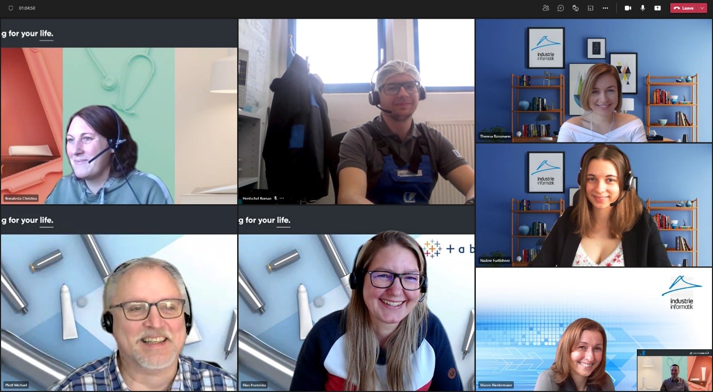 Go-Live-Betreuung durch LINHARDT-interne Kollegen und Industrie Informatik; Von links oben: Christina Bonatesta (SAP PP & MES Solution Architect), Roman Hentschel (Elektriker, SPS-Programmierer), Theresa Rossmann (Industrie Informatik – Beraterin), Michael Pledl (SAP PP & MES Solution Architect), Franziska Elias (Datenanalystin), Nadine Furtlehner (Industrie Informatik – Entwicklerin), Maren Niedermaier (Industrie Informatik – Teamleiterin Beratung BDE/MDE), Robert Brückner (Leiter IT & Digitalisierung)