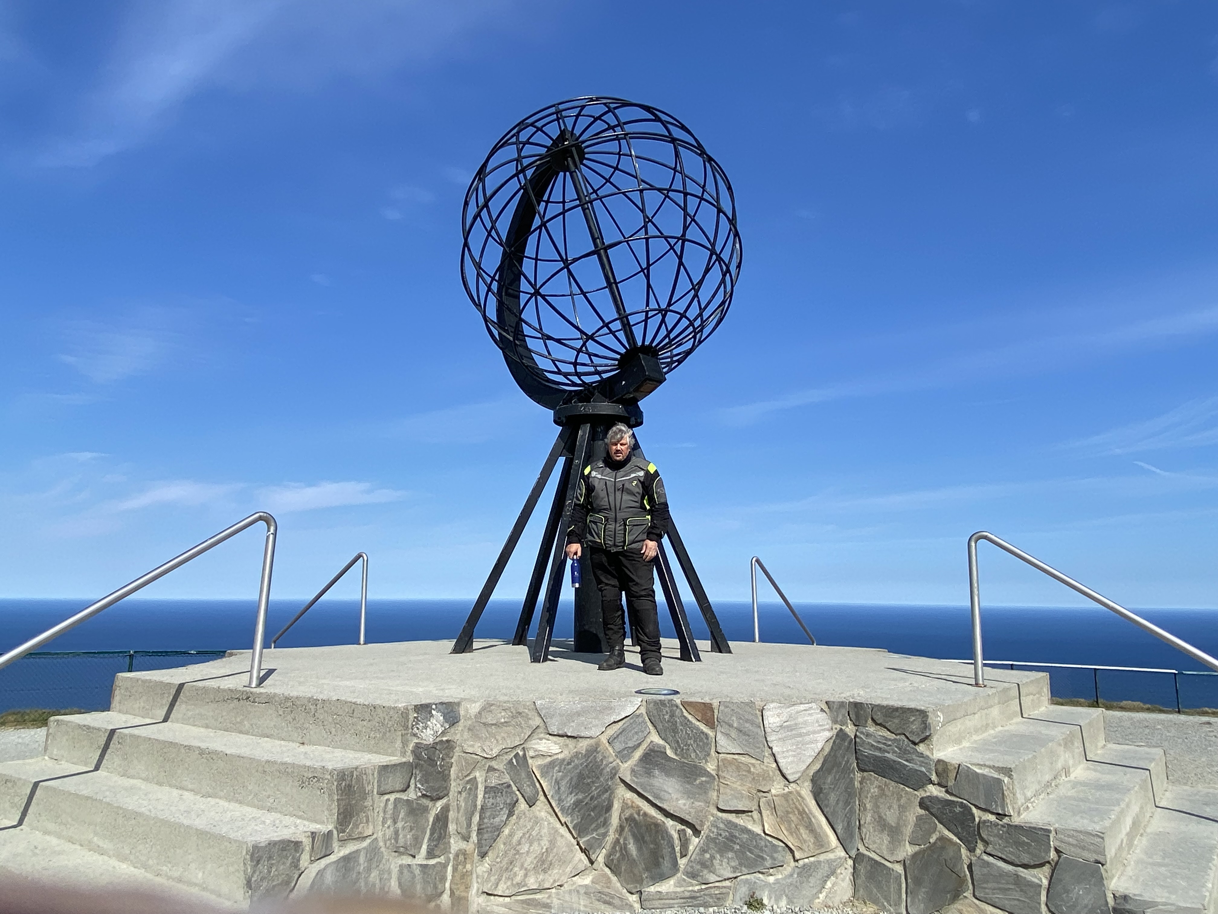 In Lappland eröffnete sich den Reisenden eine Traumstraße, die Helmut während einer spontanen Entdeckung beim Vorbeifahren ins Auge gefasst hatte. Hier zeigte sich bereits deutlich, dass die Vegetation im Vergleich zu unseren Breitengraden langsamer voranschreitet. Die Bäume wurden kleiner, und die Landschaften verwandelten sich allmählich in eine karge Kulisse. Die extremen Lichtverhältnisse des Nordens hinterließen einen nachhaltigen Eindruck: Im Sommer gibt es keine Dunkelheit, im Winter hingegen kein richtiges Tageslicht. An das muss man sich erstmal gewöhnen. Ein interessanter Fakt, den sie hier erfuhren: Alkoholkonsum ist stark tabuisiert. Der Staat hat das Monopol auf den Verkauf, eine Maßnahme, die auf den früheren hohen Alkoholkonsum zurückzuführen ist, welcher aufgrund der langen dunklen Winterzeit zu einer erhöhten Depressionsrate führen kann. Am nächsten Tag setzten sie ihre Reise fort in Richtung Nordkap, dem äußersten Punkt Europas. Je karger die Landschaft wurde, desto näher kamen die beiden ihrem Ziel. Durch Tunnel, die unter dem Meer hindurchführten und endlose Straßen gelangten sie zur Oskarsäule und schließlich zum Nordkap. Unsere Midi-B´s und die LINHARDT Flasche waren dabei natürlich immer mit dabei!