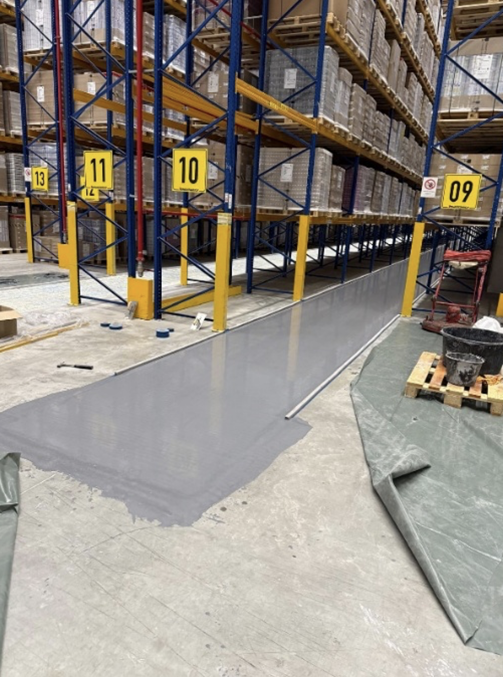 – Ausbesserung kleinerer Bodenschäden im Produktionsgebäude