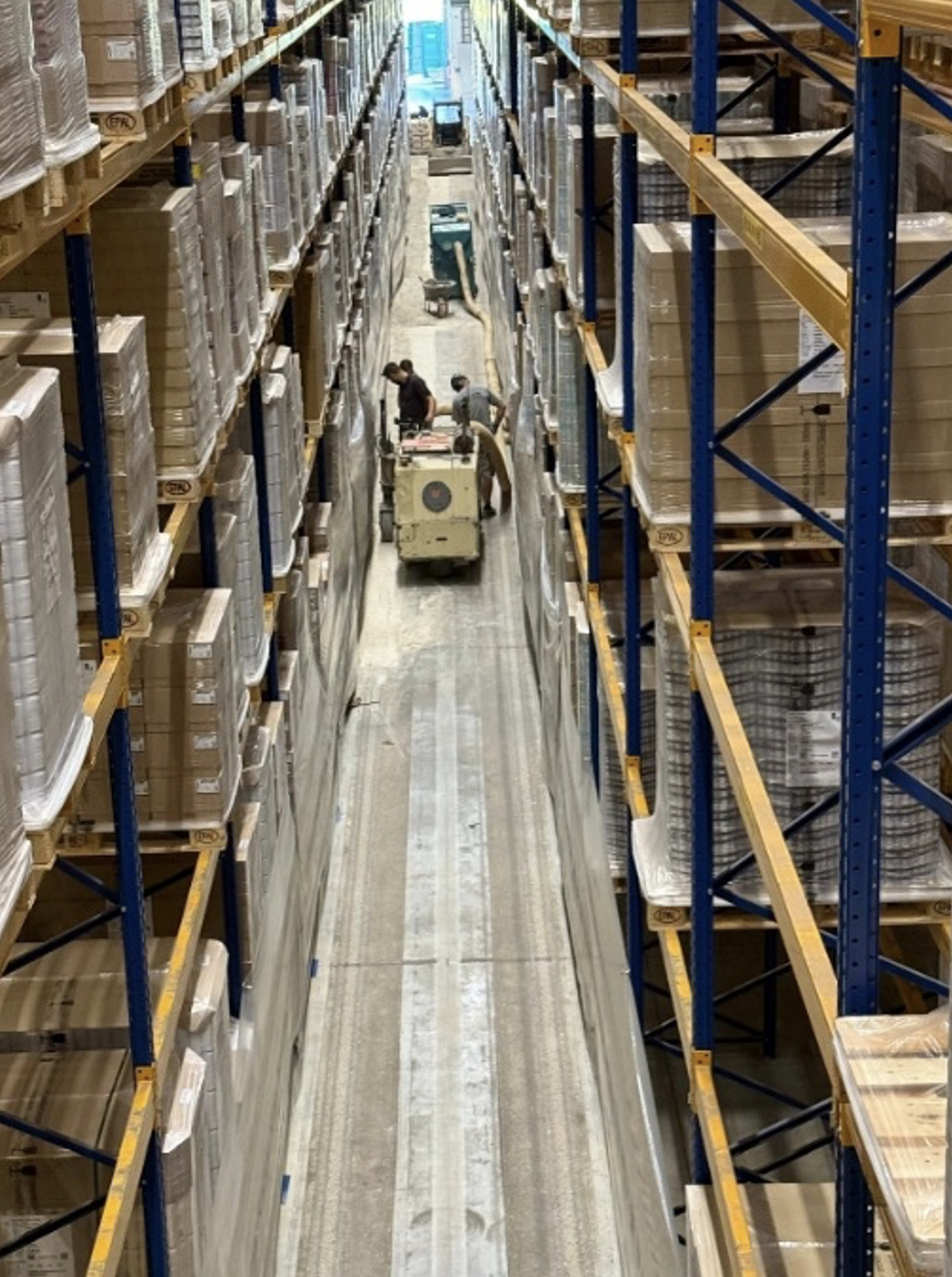 Parallel dazu begann im Fertigwarenlager die Sanierung der Bodenflächen in den Regalgassen. Die Arbeiten werden von der P&K Flooringgroup ausgeführt. Die erste Bauetappe konnte bereits erfolgreich abgeschlossen werden – die zweite folgt planmäßig im Anschluss an die Inventur zum Jahreswechsel.