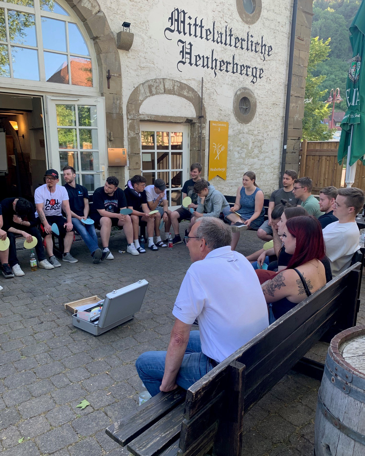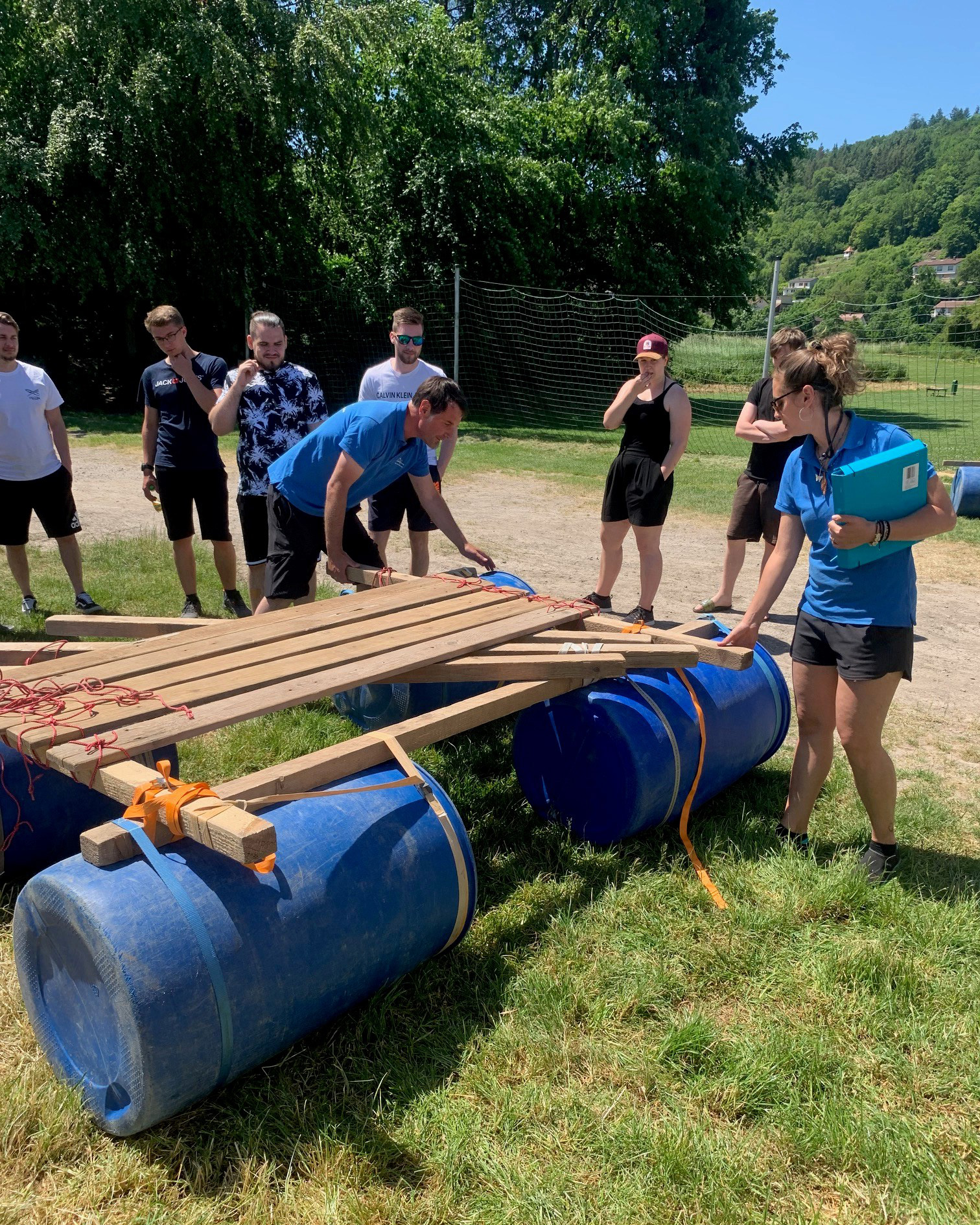 Der dreitägige Workshop startete am mit einer Werksbesichtigung im Werk Hambrücken. Anschließend ging es zum gemeinsamen Abendessen in die mittelalterliche Jugendherberge Haßmersheim. Am nächsten Vormittag fand ein Floßbau statt. Die Azubis durften mit ihren eigenen Ideen und ihrer Arbeitskraft ein Floß bauen, mit dem sie sich auf dem nahegelegenen Fluss treiben lassen konnten – perfekt bei der Hitze! Am Abreisetag gab es nach dem Frühstück eine kleine “Tagesschau” über die vergangenen Tage. Die Stimmung war bei allen Auszubildenden “sonnig”! Zum Abschluss besuchten alle gemeinsam eine Greifvogelschau auf der Burg Gutenberg.