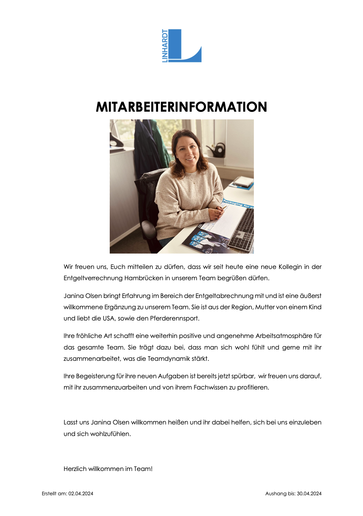 Neue Kollegin in der Entgeltverrechnung Hambrücken