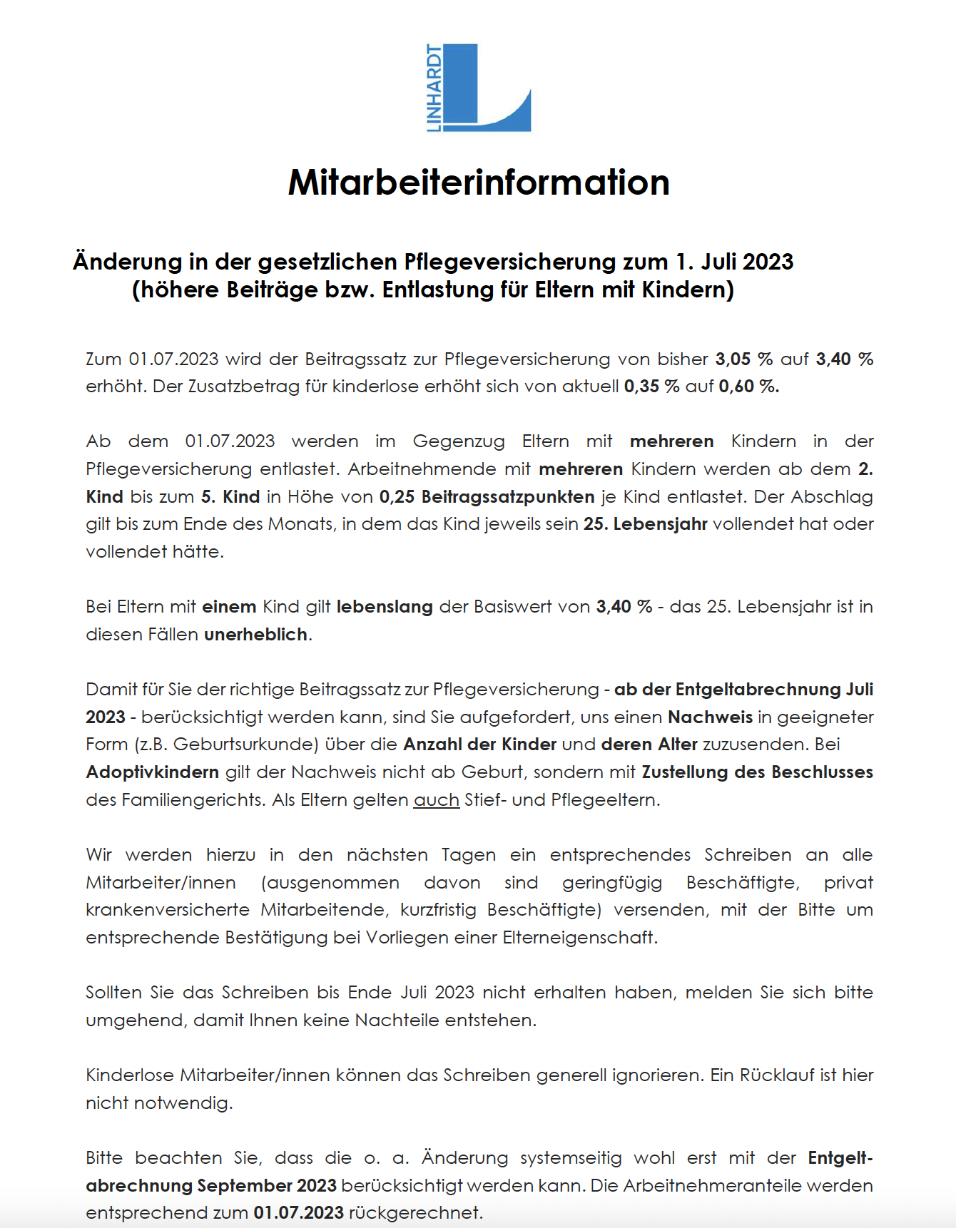 Änderung in der gesetzlichen Pflegeversicherung zum 1. Juli 2023