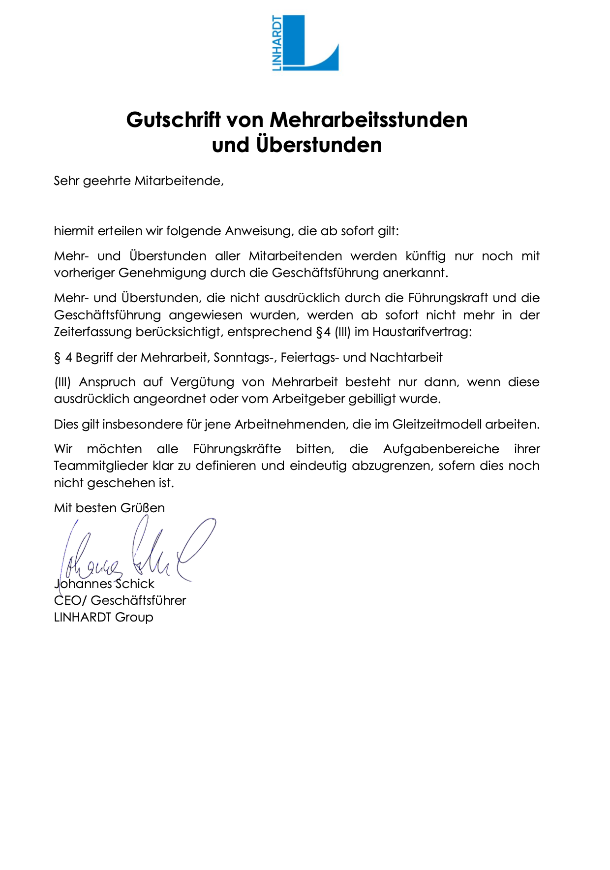 Mitarbeiterinformation – Mehrarbeitsstunden und Überstunden
