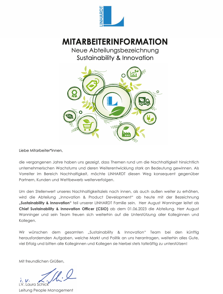 Mitarbeiterinformation – Sustainability & Innovation