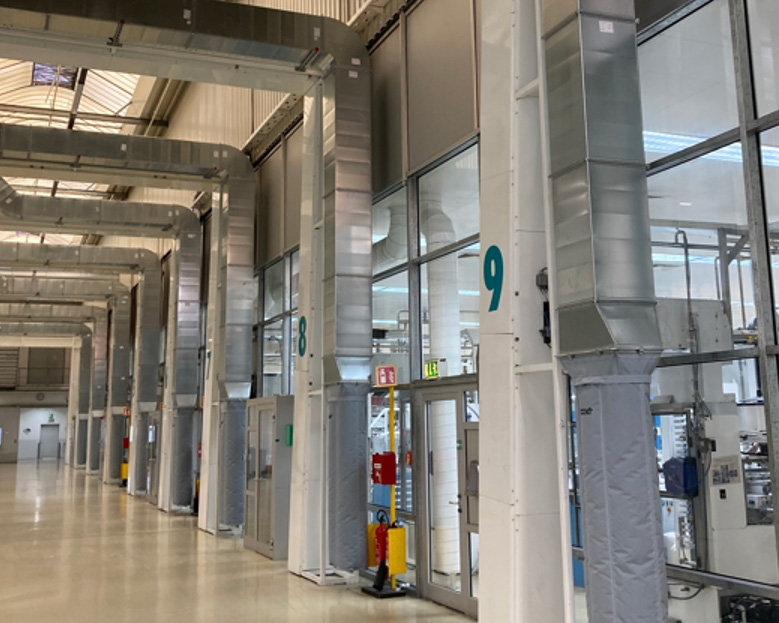 Positiver Nebeneffekt: durch den optimierten Verlauf der neuen Luftkanäle ergibt sich auch eine erhebliche Energieeinsparung für die großen Motore im Zuluftbereich.