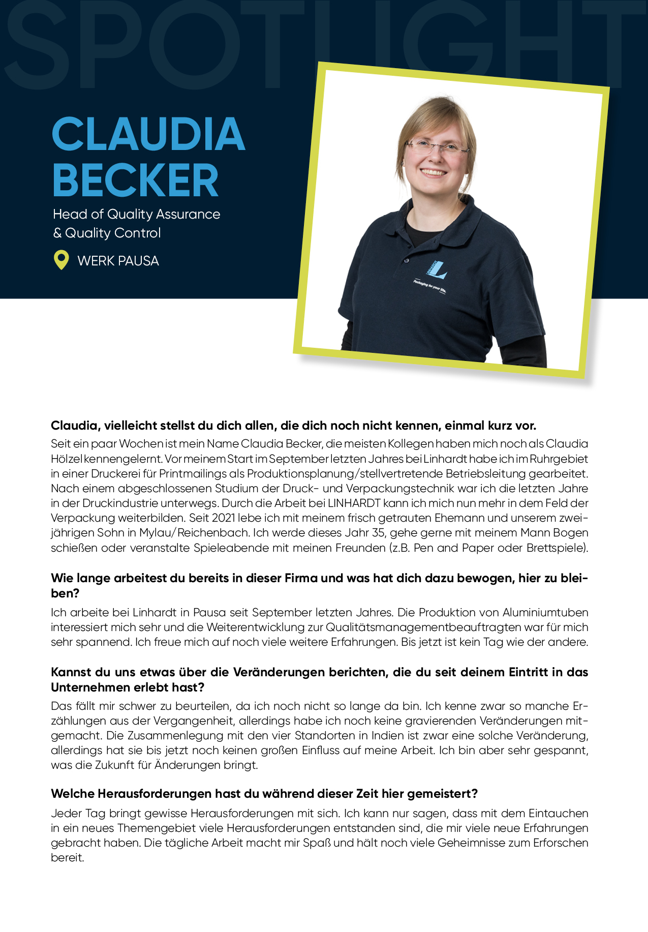 Spotlight LP – Head of Quality Assurance & Quality Control Claudia Becker