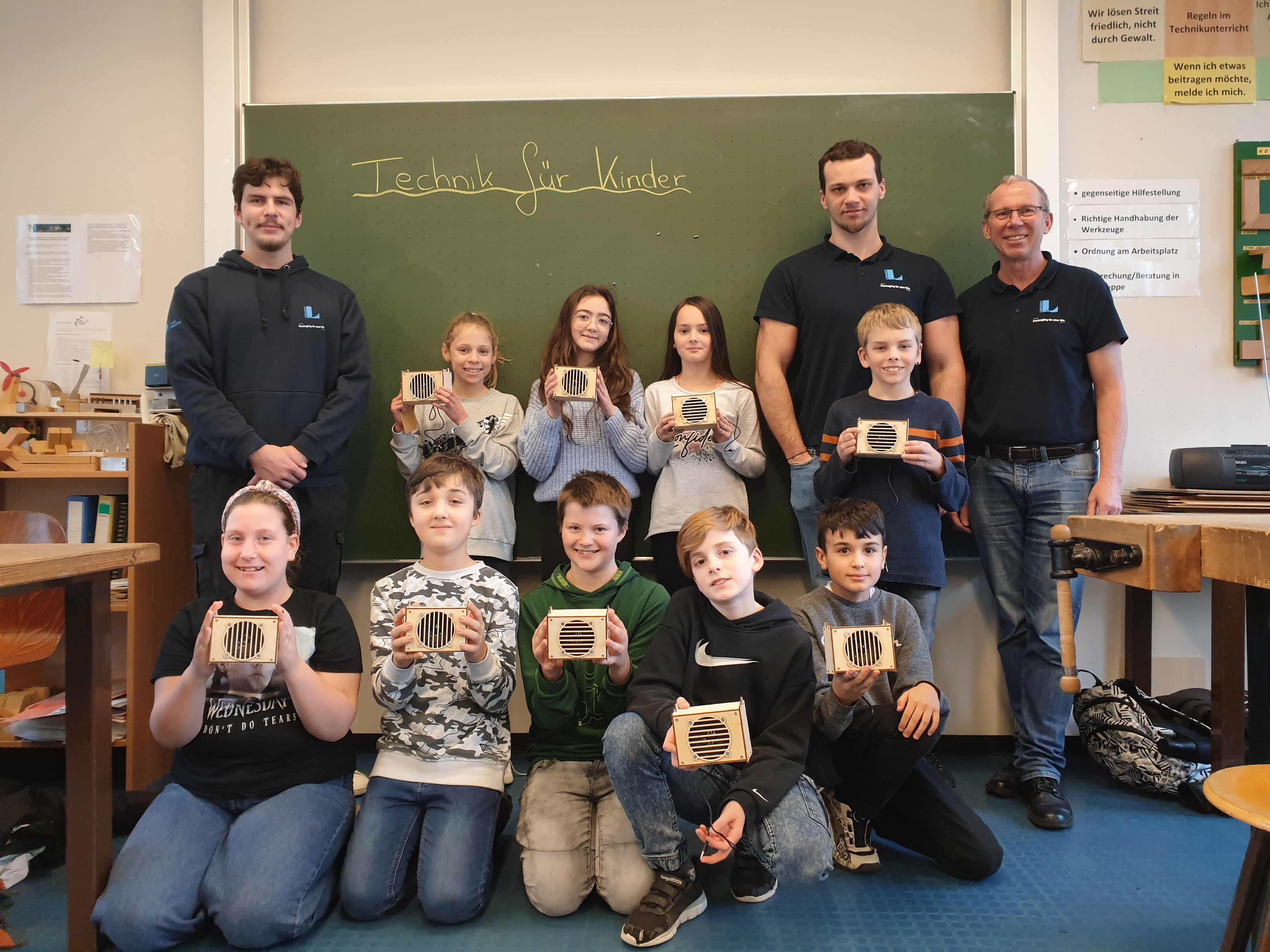 Die Umsetzung und Finanzierung des Projekts erfolgte erneut durch uns insbesondere unter der Leitung von Ausbildungsleiter Gerhard Aichinger. Zusammen mit sechs seiner Auszubildenden (Tobias Kraus, Eduard Pavel, Raphael Duck, Bastian Penzkofer, Aaron Vogl und Edwin Luja) stand er den Schülerinnen und Schülern immer helfend zur Seite. Am Ende konnten alle Kinder stolz eine voll funktionsfähige Musikbox mit nach Hause nehmen.