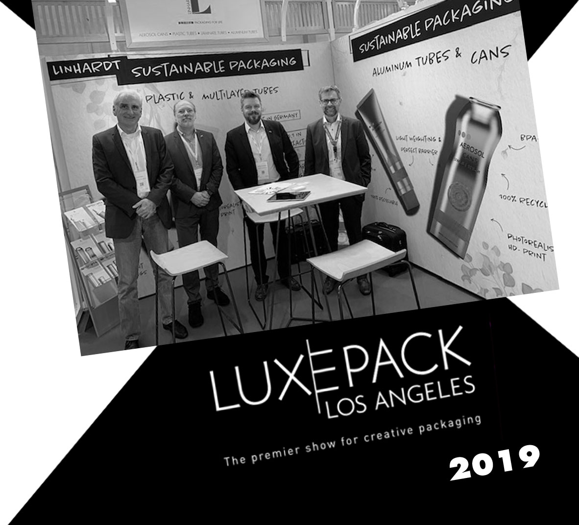 “Klein aber fein”, so könnte man die Messe „Luxepack“ in Los Angeles bezeichnen an der LINHARDT dieses Jahr zum ersten Mal mit einem Stand vertreten war. „Der Andrang war überwältigend“, schwärmt August Wanninger aus dem Sales-Team „Specials & Aerosols“. Zusammen mit seinem Kollegen Christian Kunzelmann, Geschäftsführer Franz Hacker, sowie dem Vertreter Mike Meyer, betreute er den Messestand in Los Angeles. „Besonders mit unserem Fokus auf nachhaltige Verpackungen lagen wir voll im Trend“, so Wanninger. Die Messe fand dieses Jahr zum zweiten Mal statt und wird in den kommenden Jahren sicher noch weiter an Popularität zunehmen.