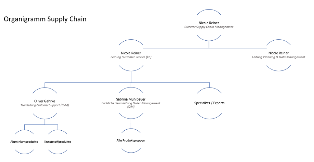 Die im letzten Jahr eingeteilten Bereiche, Customer Support und Order Management, werden durch Teamleiter ergänzt.