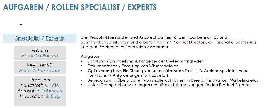 Zur Stärkung der Fachkompetenz unseres Customer Support wurden Experten ernannt, welche durch ihr vertieftes Wissen der einzelnen Bereiche, spezifische Aufgabenbereiche übernehmen werden.